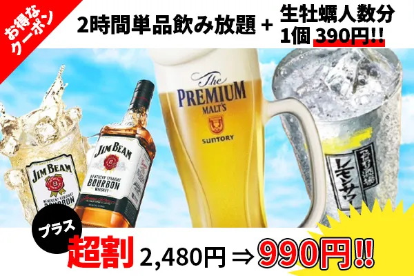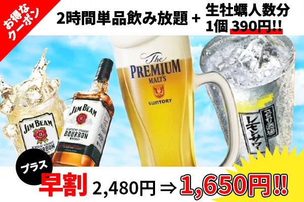 【お得な特典 生牡蠣人数分1個690円→1個390円】