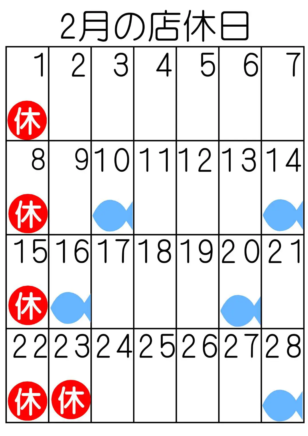 当店の2月の営業情報につきましてご案内いたします。
