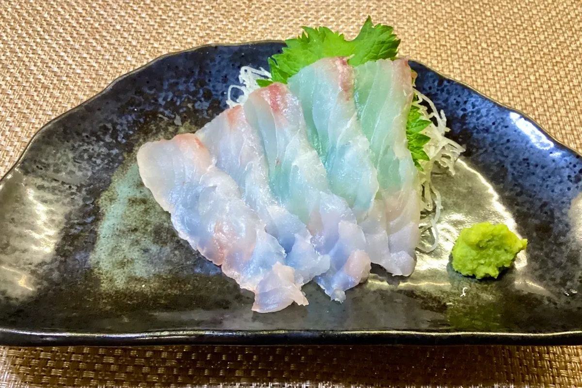 千葉県大原沖で獲れた天然の「ヒラメ刺身」は、噛めば噛むほど強い甘味と旨味が口いっぱいに弾けます。